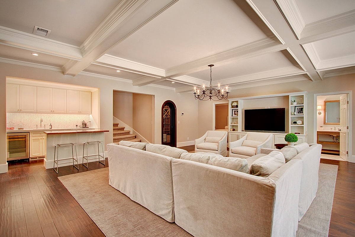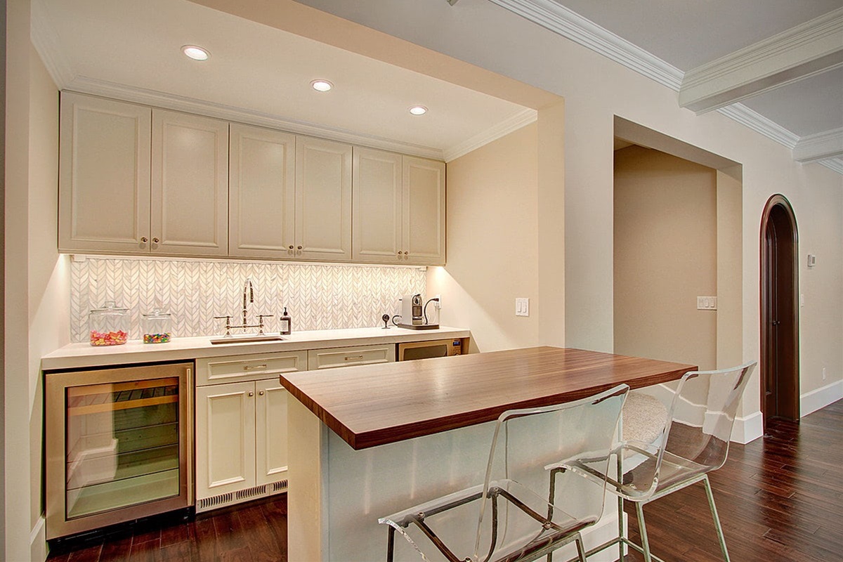 We added three large steel beams to re-structure the house and finished the space out with a dry bar, living and dining area, bedroom and bathroom.